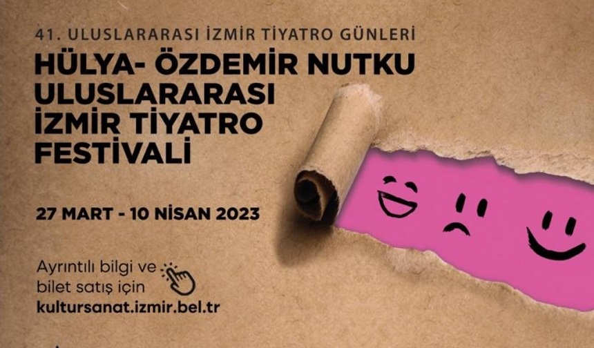 Son dakika İzmir haberleri… 41. Hülya – Özdemir Nutku Uluslararası İzmir Tiyatro Festivali 2023 başlıyor. İzmir Büyükşehir Belediyesi’nin 2022’de “Hülya-Özdemir Nutku” adıyla düzenlediği Uluslararası İzmir Tiyatro Festivali (41. Uluslararası İzmir Tiyatro Günleri) 27 Mart-10 Nisan tarihleri arasında düzenlenecek. Birçok oyunu izleyiciyle buluşturacak festival kapsamında 21 yetişkin oyunu, 4 köy tiyatrosu performansı, 6 çocuk oyunu ve 2 uluslararası performansı sanatseverlerin beğenisine sunulacak.