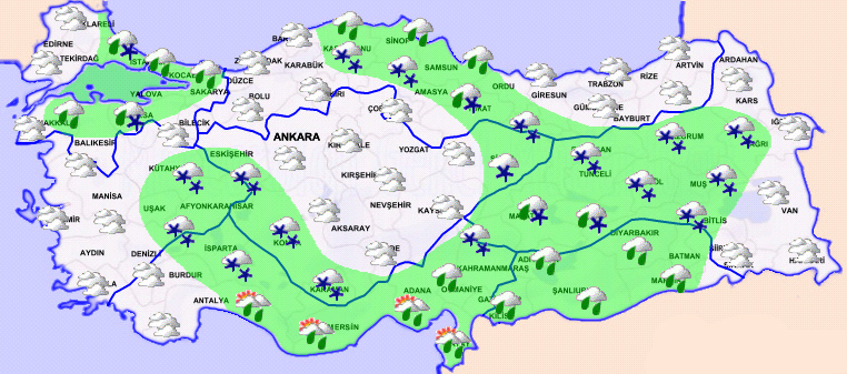 3°C Çok bulutlu, öğle ve gece saatlerinde kar yağışlı
