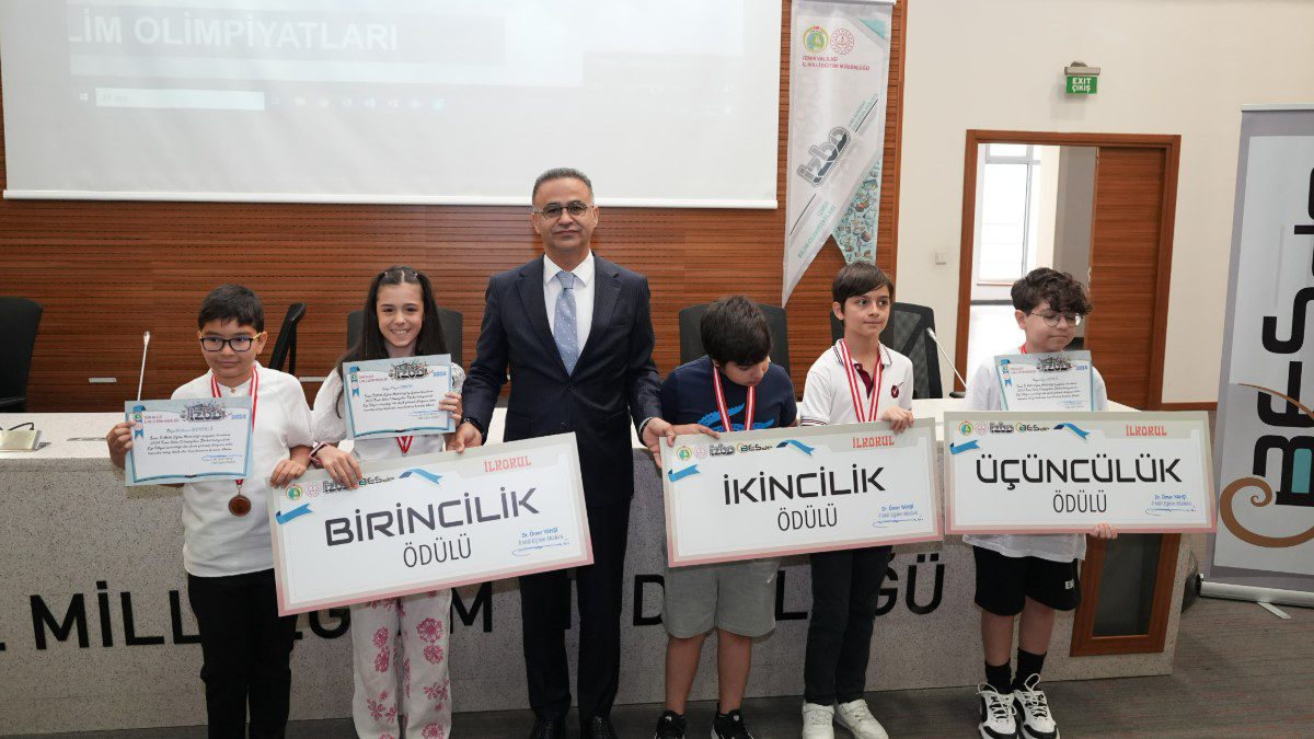 İzmir İl Millî Eğitim Müdürü Dr. Ömer Yahşi, ödül töreninde yaptığı konuşmada öğrencilerin başarılarından duyduğu memnuniyeti dile getirerek, “Bugün, Türkiye Yüzyılı’nın teknoloji ve bilimle yoğrulmuş rüyasını gerçeğe dönüştüren gençlerimizin başarılarına şahitlik için bir aradayız. İzmir İl Millî Eğitim Müdürlüğü olarak Sayın Valimizin öncülüğünde, İzmir’i bir bilim ve inovasyon üssüne dönüştürmek için var gücümüzle çalışıyoruz. Umudun ve gayretin adı olan ‘İzmir Bilim Olimpiyatları’nda yarışan her öğrencimiz, sadece bireysel başarıya imza atmakla kalmayıp, milletçe kurduğumuz büyük hayalleri de gerçeğe dönüştürüyor. Geleceğimiz olan evlatlarımızın yazdığı başarı hikâyeleri, bizleri gururlandırıyor. Gazi Mustafa Kemal Atatürk’ün Türkiye Cumhuriyeti’ni kurarken gösterdiği inanç ve kararlılık gibi, biz de evlatlarımıza yürekten inanıyor, onların potansiyellerine güveniyoruz. İzmir eğitim ailesi olarak amacımız, evlatlarımıza ışık tutmak, onlara umut olmak ve bilinçli, farkındalığı yüksek nesiller yetiştirmektir. Buradan ülkemize yeni Aziz Sancarlar, Fuat Sezginler çıkacağına olan inancım tamdır. Öğrencilerimizin başarılarının devamını diliyor; bu vesileyle evlatlarımızı yetiştiren ailelerine, öğretmenlerimize ve emeği geçen herkese teşekkür ederim.” dedi.