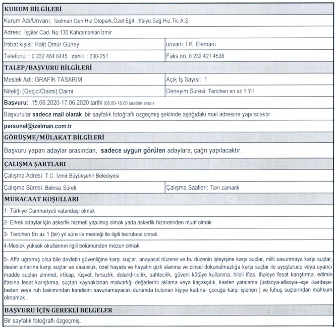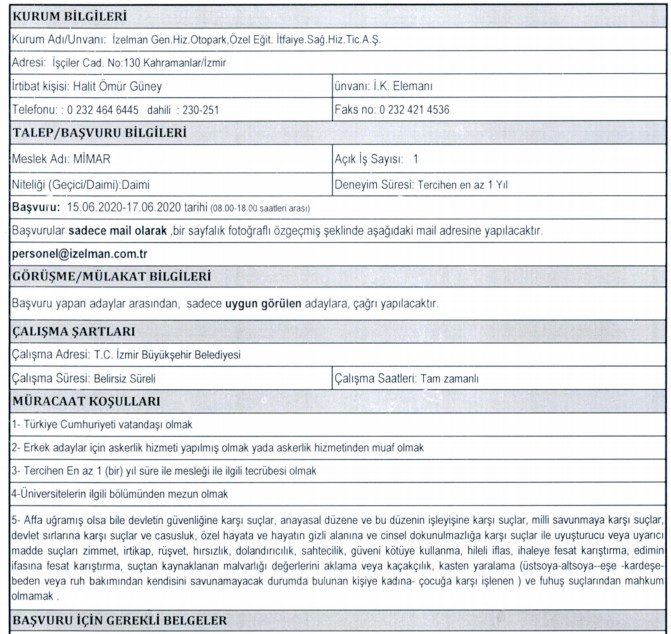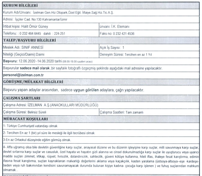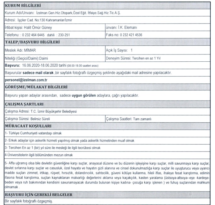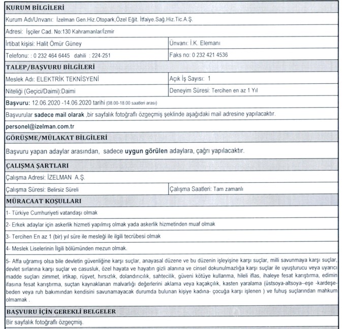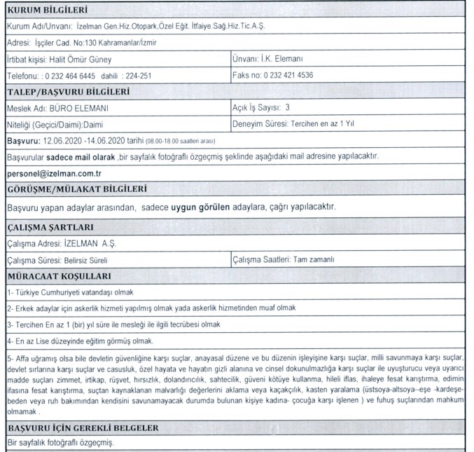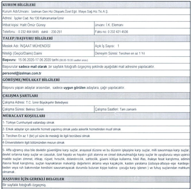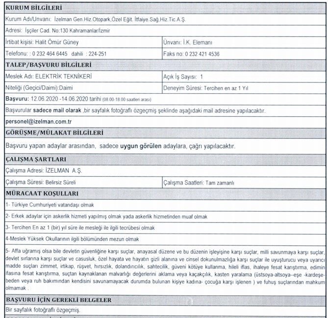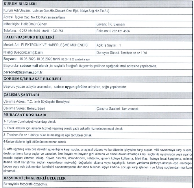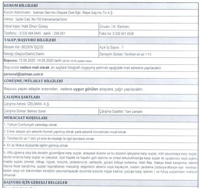 İZELMAN PERSONEL ALIMI