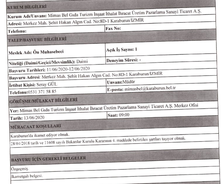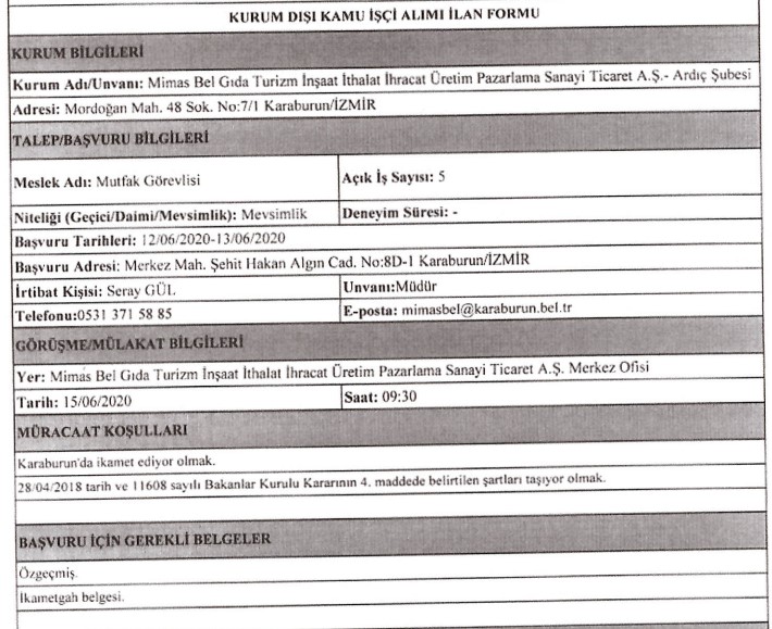 KARABURUN MİMAS PERSONEL ALIMI