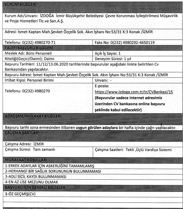 İZDOĞA PERSONEL ALIMI