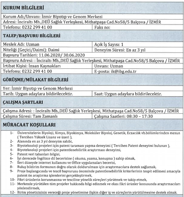 BİYOTIP VE GENOM MERKEZİ PERSONEL ALIMI