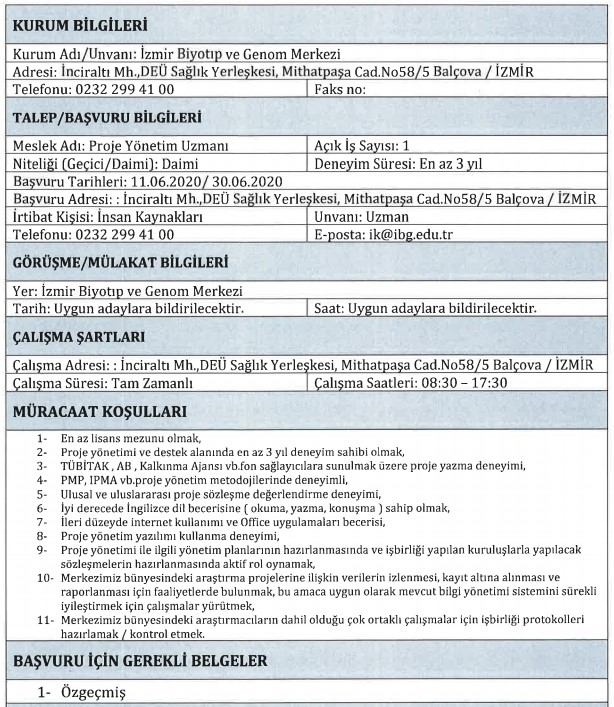 Proje yönetim uzmanı – 1 kişi