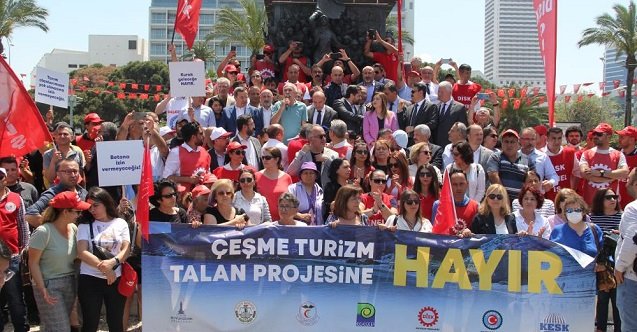 Son dakika İzmir Çeşme haberleri… İzmir Çeşme turizm projesi iptali için miting düzenlendi. Çeşme’de yaklaşık 45 bin dönüm alanda 15 milyar dolarlık yatırımla hayata geçirileceği açıklanan turizm projesi, Cumhuriyet Meydanı’nda düzenlenen mitingle protesto edildi. İzmir Büyükşehir Belediyesinin ev sahipliğinde düzenlenen mitinge CHP Genel Başkan Yardımcısı Ali Öztunç, İzmir Büyükşehir Belediyesi Başkanı Tunç Soyer, CHP İzmir İl Başkanı Deniz Yücel, ilçe belediye başkanları, bazı sivil toplum kuruluşlarının temsilcileri ve vatandaşlar katıldı.