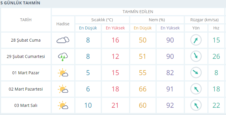 28 Şubat Cuma – Çok Bulutlu 8 | 16