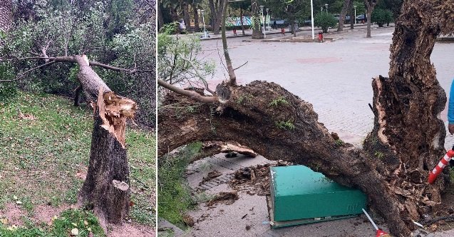 Kent genelinde 33 ağaç devrildi; Menderes, Tire, Karaburun ve Foça’da birer çatı uçtu. İtfaiye, Fen İşleri, Park ve Bahçeler Dairesi Başkanlığı ekipleri devrilen ağaçlara, uçan çatılara müdahale etti. 60 kişiden oluşan Park ve Bahçeler Dairesi Başkanlığı ekipleri Konak, Narlıdere, Buca, Karşıyaka ve Balçova’da yollarda, parklarda ve tramvay güzergâhında devrilen ağaçları kaldırarak trafiğin ve yaya yolunun açılması sağladı.