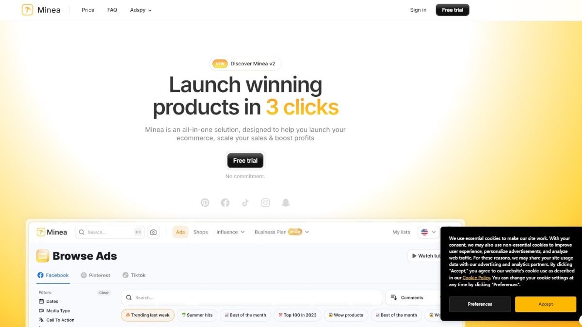 5. Minea: Reklam Kütüphanesi ve Takip Aracı