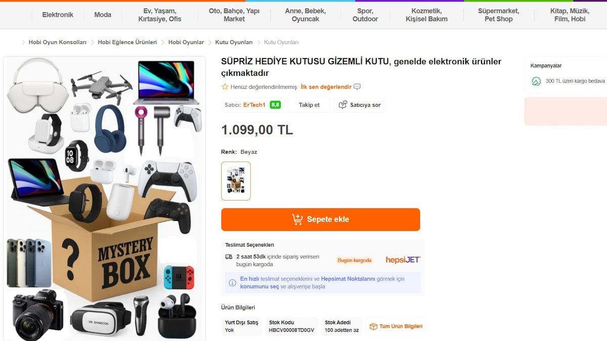 Hepsiburada, Türkiye’nin en köklü e-ticaret platformlarından biri olarak gizemli kutu kategorisinde de faaliyet gösteriyor. Farklı satıcılar tarafından sunulan elektronik sürpriz kutular ve tema kutular bulunuyor. Güçlü lojistik ağı ve müşteri güveni ile öne çıkıyor.